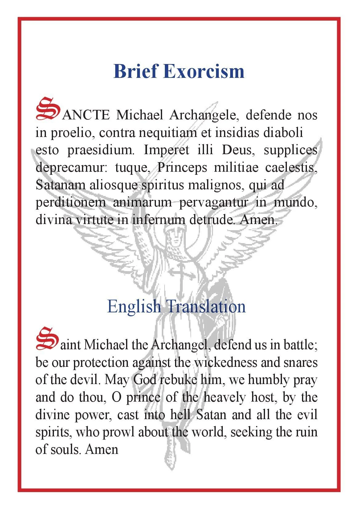 Exorcistic prayer to St Michael the Archangel